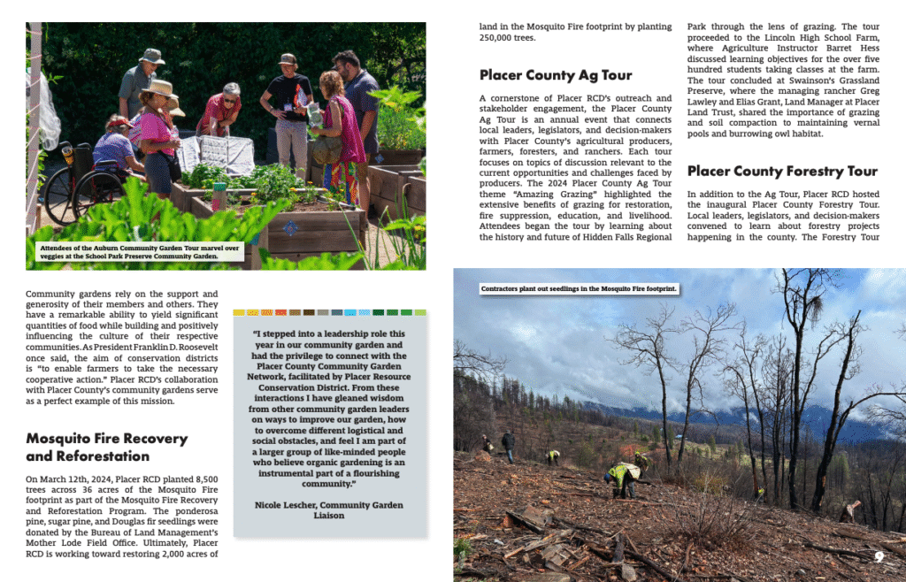 This annual report placed emphasis to the people living out the work of conservation and whom participated in Placer RCD programs or projects. I served as editorial and co-creative lead, guiding narrative structure, story selection, and tone, while collaborating with staff designers and writers to produce a cohesive and high quality publication that reflected Placer RCD’s values.
