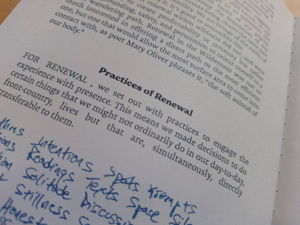 This chapter of Wonder & Wander: A Trailside Companion to Renewal articulates the guiding approach to Renewal in the Wilderness as a three-part movement of approaching, entering, and returning from wild places. It frames renewal as an intentional practice grounded in presence, spaciousness, attentiveness, and relational compassion. Drawing from experience and practice, the writing shows how simple rhythms can become portals into deeper awareness and by naming tension, contrast, and the archetypal retu. The piece offers a potential structure for others seeking renewal in their own contexts.