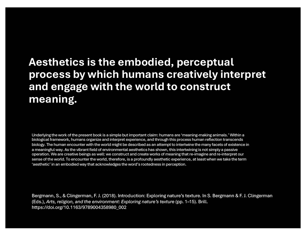 Inspires a new way to observing the landscape; treating aesthetic awareness as a form of care, intelligence, and relational stewardship.